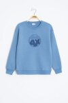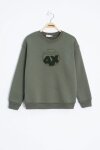 Haki Yazı Nakışlı Bisiklet Yaka Erkek Çocuk Şardonlu Sweatshirt 23248