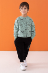 Kumaş İçeriği: %60 Pamuk %40 Polyester İçeriklidir. Türkiye'de Üretilmiştir. Bisiklet Yaka, Uzun Kol Dinozor Baskılı Sweatshirt ve Beli Paçası Lastikli Tek Alttan Oluşan Erkek Çocuk Eşofman Takımı. Şardonlu Kalın Kumaşı ile Çocuklarınızı Sıcak Tutacak Yapıdadır.