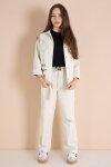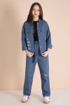 İndigo Yazı Detaylı Gömlekli Kız Çocuk Pantolonlu Gabardin Takım 23567