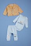 Kahve Ayıcıklı Çıtçıtlı Badili 3lü Erkek Bebek Takım 15688