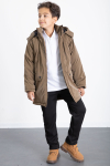 Kahve Fermuarlı Göğüs Cepli İçi Kürklü Erkek Çocuk Kapüşonlu Mont 21354