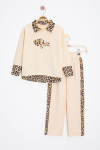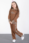 Kahve Leopar Şerit Detaylı Kalpli Kız Çocuk Alt Üst 2li Takım 20524