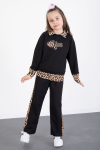 Yakası ve Kolları Leopar Detaylı Uzun Kol Badi ve Garnili Tek Alttan Oluşan Kız Çocuk Takım Modeli.