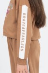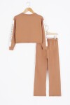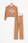 Kahve Şerit Yazılı Payetli Kız Çocuk Eşofman Takımı 17130