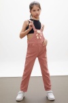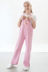 Kahverengi Ayıcık Cepli Yırtmaçlı Kız Çocuk Salopet Tulum