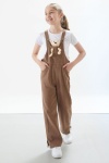 Kahverengi Ayıcık Cepli Yırtmaçlı Kız Çocuk Salopet Tulum 17712