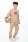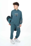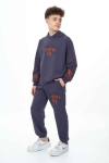 Kumaş İçeriği: %98 Pamuk %2 Elastan İçeriklidir. Türkiye'de Üretilmiştir. Cool Yazı Baskılı Kolları Alev Detaylı Kapüşonlu Sweatshirt ve Beli Lastikli Tek Alttan Oluşan Erkek Çocuk Eşofman Takımı