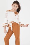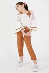 Kahverengi Fiyonklu Askılı Volanlı Kol Kız Çocuk Takım 15091