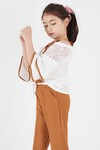 • Şık Dantel Detayı, Volanlı Kol ve Kuşağı ile Kız Çocuk Alt Üst Takım. Sadeliği ve aynı zamanda şık detayları ile özel günlerinizde çocuklarınıza çok yakışacak Dantelli Volanlı Takım.
