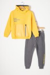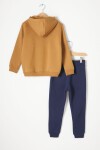 Kahverengi Kanguru Cepli Polarlı Erkek Çocuk Kapşonlu Eşofman Takımı 16729
