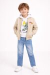 Kahverengi Nakışlı Ceketli Jean Pantolonlu Erkek Çocuk Kapşonlu 3lü Takım 23526