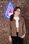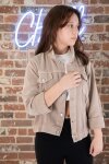 Kahverengi Ön Cepli Nakış Detaylı Kız Çocuk Jean Ceket 20360