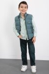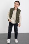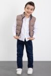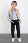 Kahverengi Şişme Yelekli Gömlekli Erkek Çocuk 3lü Pantolonlu Takım 23473