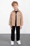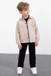 Kahverengi Yazılı Düğmeli Gömlekli Erkek Çocuk Pantolonlu 3lü Takım 23371