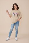 Kumaş İçeriği: 98 Pamuk %2 Elastan İçeriklidir. Türkiye'de Üretilmiştir. Taşlı Dondurma Baskılı, Kısa Kollu Oversize Kesim ile Şık Kız Çocuk Tişört Modeli.