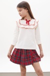 Kırmızı Ekose Desenli Şort Etekli Fiyonklu Bluzlu Kız Çocuk Takım 18268