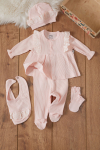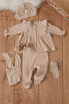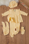 Kumaş İçeriği: %95 Pamuk %5 Elastan İçeriklidir. Türkiye'de Üretilmiştir. Çıtçıt Kapamalı Uzun Kollu Badi, Patikli Tek Alt, Dantel Detaylı Detaylı Şapka, Eldiven ve Önlükten Oluşan Kız Bebek Yenidoğan 5'li Hastane Çıkışı Seti. Yumuşak ve Rahat Kumaşı ile Bebeklerinizin Rahatını Gözeten Takım Modeli. Organik Pamuk Kumaşıyla Bebek Sağlığına Zararlı Hiçbir Madde İçermemektedir. Şık Fisto ve Dantel Detayları ile Bebeklerinizin Üzerinde Hoş Bir Görünüm Sağlar.