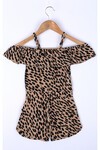 Kız Çocuk Açık Kahve Leopar Desenli 3-10 Yaş Şortlu Tulum 4157