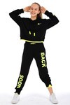Kız Çocuk Back Yazı Baskılı Kapşonlu Takım 14185