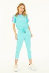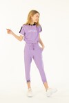 Genç Kız Set Alt Üst Kısa Kollu takım Kapüşonlu - Cepli - Baskılı