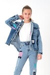Püsküllü- Yıkamalı Klasik Yaka, Cepli Arkası Baskılı Jean Ceket