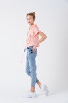 Kumaş İçeriği: Pamuk %95 - Elestan %5. Eskitme - Dar Paça Baskılı- Yıkamalı Beli Kemerli - Cepli - Jean Pantolon. En Yüksek Yıkama Sıcaklığı 30°C Tamburlu Kurutma Yapılmaz.