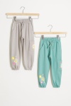 Kız Çocuk Paçası Çiçek Baskılı 2li Eşofman Altı Bej-Yeşil 18390