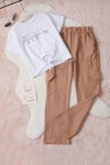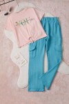 Kız Çocuk Pembe Yazı Baskılı Bluzlu Kargo Pantolonlu Takım 15453