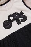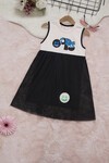 Orta kalınlıkta yumuşak kumaşıyla çocukların rahatsız olmadan giyebileceği, Pul ve file detaylarıyla çok seveceği Elbise.