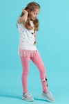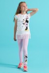 %100 Pamuk. 30 Derecede Yıkayınız Renkli baskısı ve sevimli püskülleri ile şık bir görünüm sağlar. Yaz mevsiminde çocuklarınız için en uygun taytlı takım.