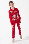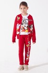 Tayt, Sweatshirt ve Hırkadan Oluşan Simli ve Sevimli Baskısıyla 3'lü Eşofman Takımı