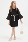 Kız Çocuk Siyah Dantel Süslemeli Çantalı Piliseli Elbise 15167