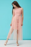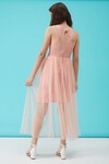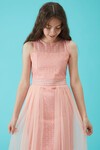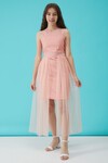 Kız Çocuk Somon Taş Detaylı Tüllü Abiye Elbise 15160