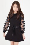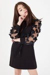 • Kol Bölgelerindeki Tül Detaylarıyla Modern Bir Görünüme sahip Kız Çocuk Elbise.