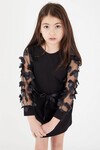 Kolları Tüllü Kuşaklı Kız Tunik Elbise 15037