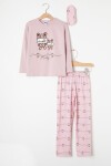 Koyu Pembe Çizgili Hayvan Desenli Kız Pijama Takımı 16335