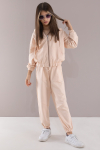 Krem Basic Kapüşonlu Hırkalı Kız Çocuk Eşofman Takımı