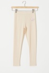 Krem Çiçek Nakış Detaylı Kız Çocuk Fitilli Tayt