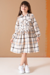 Kumaş İçeriği: %70 Pamuk %30 Polyester İçeriklidir. Türkiye'de Üretilmiştir. 2 Adet Göğüs Cebe Kuşaklı, Boydan Düğme Kapamalı Çizgi Desenli Elbise Modeli.