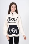 Krem Cool Yazı Baskılı Boğazlı Kız Çocuk Sweatshirt 16450