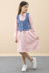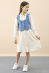 Krem Jean Yelekli Uzun Kol Kız Çocuk 2li Müslin Elbise 20668