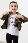 Krem Nakışlı Jean Gömlekli Tişörtlü Erkek Çocuk 2'li Takım