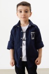 Krem Nakışlı Jean Gömlekli Tişörtlü Erkek Çocuk 2'li Takım 18237