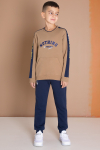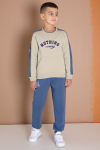 Krem Şerit Yazı Baskılı Şardonlu Erkek Çocuk Eşofman Takımı 19606