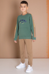 Kumaş İçeriği: %65 Pamuk %35 Polyester İçeriklidir. Türkiye'de Üretilmiştir. Yazı Baskılı Bisiklet Yaka Sweatshirt ve Bel Paçası Lastikli Tek Alttan Oluşan Erkek Çocuk Şardonlu Eşofman Takımı. 3 İplik Şardonlu Kumaşı ile Soğuk Havalar için Uygundur. Lastikli Yapısı ve Esnek Kumaşı ile Rahat Bir Kullanım Sunar.