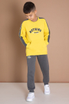 Krem Şerit Yazı Baskılı Şardonlu Erkek Çocuk Eşofman Takımı