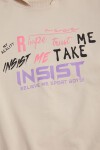 Krem Yazı Baskı Renkli Kollu Kapüşonlu Kız Çocuk Sweatshirt
