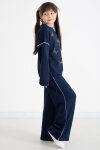 Lacivert Payetli Kelebek İşlemeli Geniş Paça Kız Çocuk Eşofman Takımı 22735