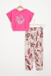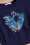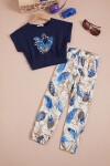 Lacivert Yaprak Baskılı Bluz Pantolon Kız Takım 15517