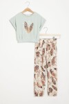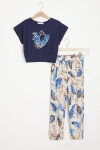 Lacivert Yaprak Baskılı Bluz Pantolon Kız Takım